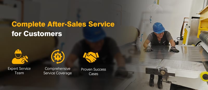 "Satışdan sonra müştərilərə müştərilərə məlumat verin"Kingreal Steel Slitter, müştərilərin ehtiyaclarına görə tam satış xidmətini təmin edə bilən satışdan sonrakı xidmət qrupu var. Buraya on-line quraşdırma rəhbərliyi, müştəri fabriki təlimat xidməti, maşın istismarı təlimatı və texniki xidmət və s. Daxildir.